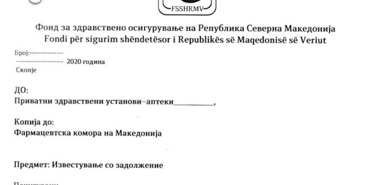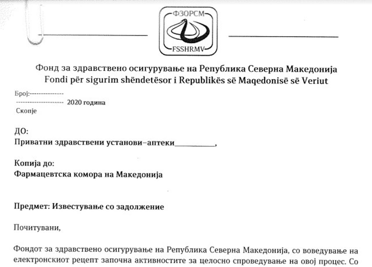 ИЗВЕСТУВАЊЕ ОД ФЗОМ ДО ПЗУ АПТЕКИ